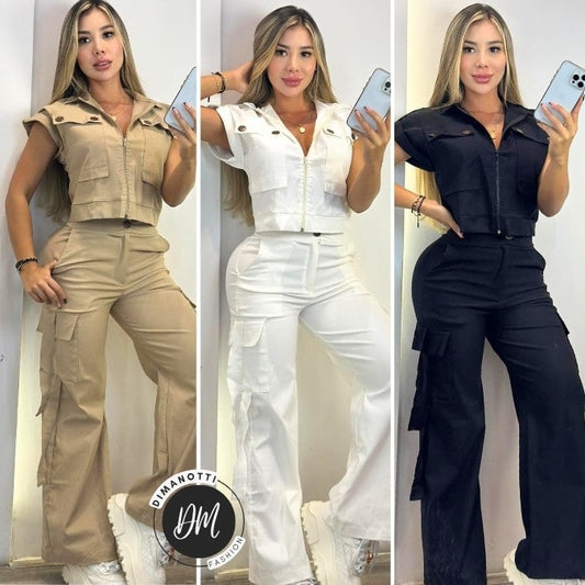 CONJUNTO CAMELIA®: TOP TIPO CHALECO+ PANTALON BOTA RECTA