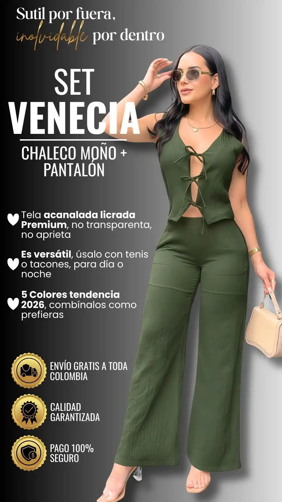 SET VENECIA: CHALECO MOÑO + PANTALÓN